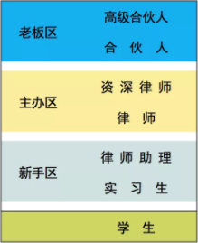 老板區即合伙人區涉及大量綜合性的考量維度,我們無法進行過多展開。通常認為,合伙人們應當具備營銷能力、公眾演講能力、社會資源的協調能力、與二級市場的合作能力、團隊人員的管理能力、品鑒律所平臺的能力等。當然,對于授薪合伙人、尤其是辦案型合伙人或科研型合伙人的要求可另當別論。